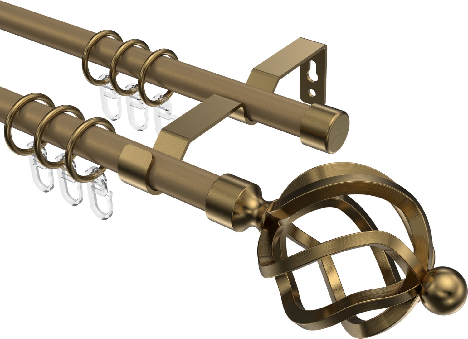 Gardinenstangen aus Metall in 16 mm Ø, 2-läufig, Modell OLYMP - Paolo Gold matt / Messing Antik