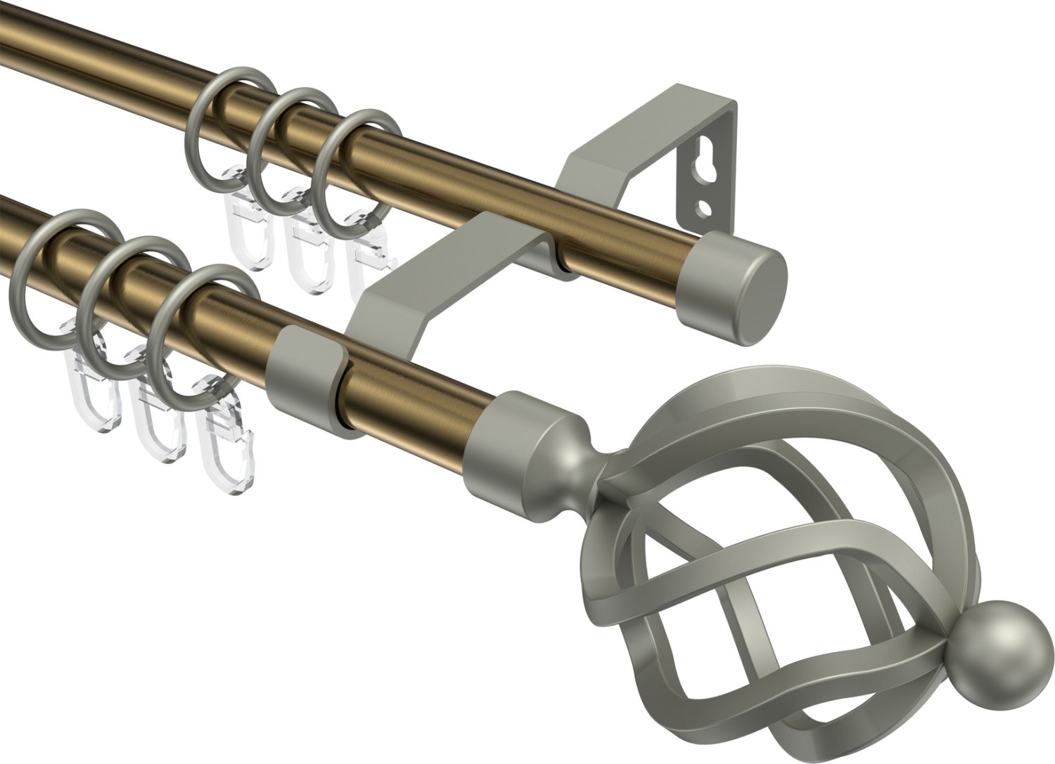 Gardinenstangen aus Metall in 16 mm Ø, 2-läufig, Modell OLYMP - Paolo Messing Antik / Chrom matt