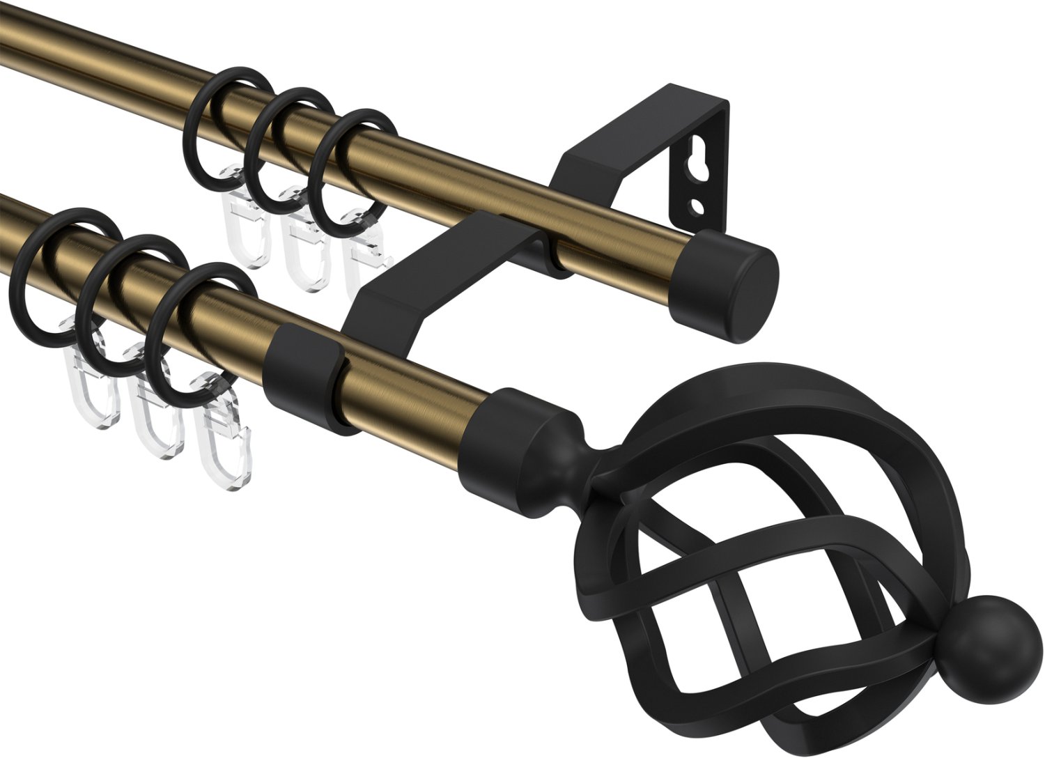 Informationen zu Gardinenstange Metall 16 mm Ø 2-läufig OLYMP - Paolo Messing Antik / Schwarz: