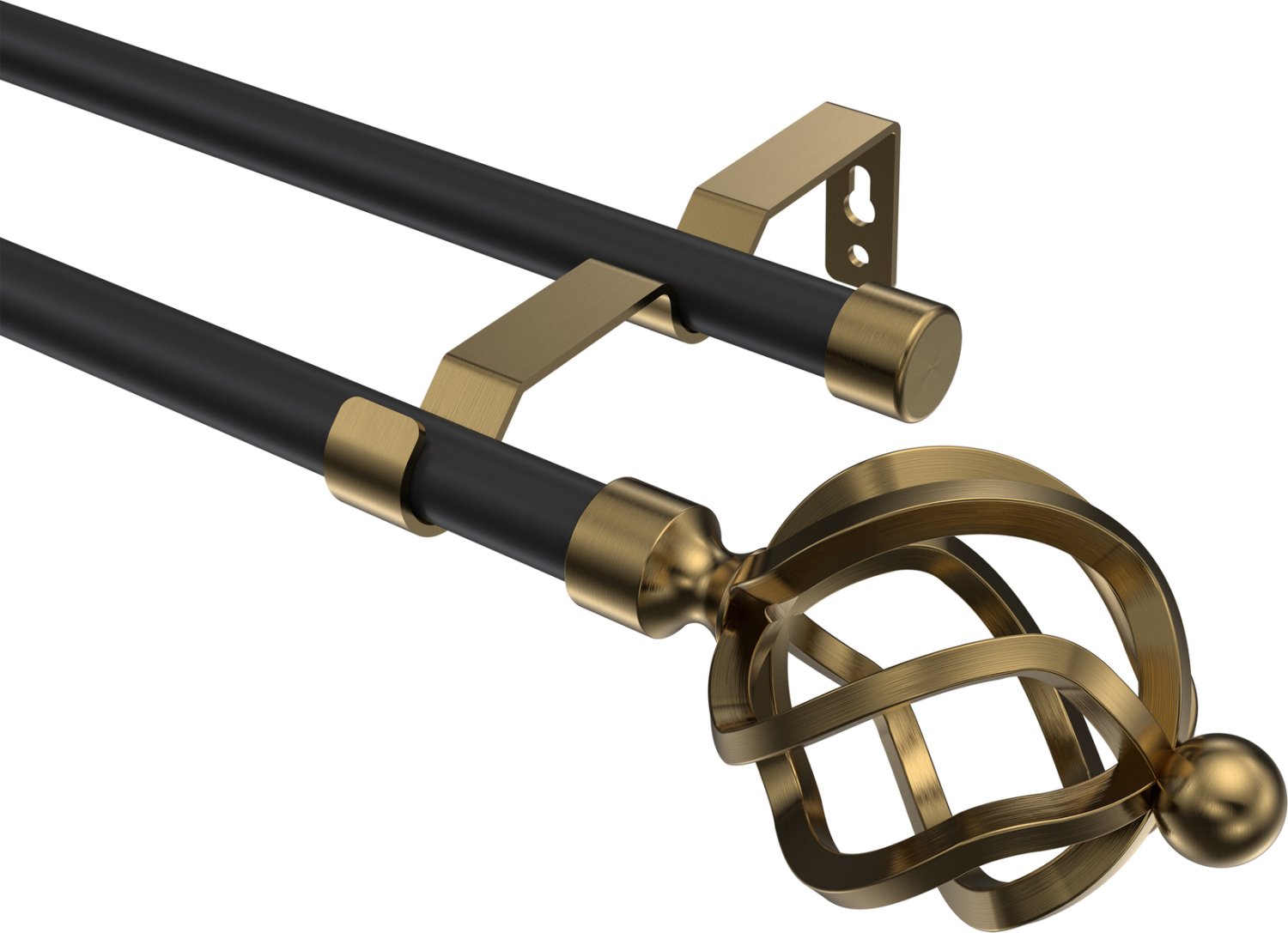 Gardinenstangen aus Metall in 16 mm Ø, 2-läufig, Modell OLYMP - Paolo Schwarz / Messing Antik (ohne Ringe)