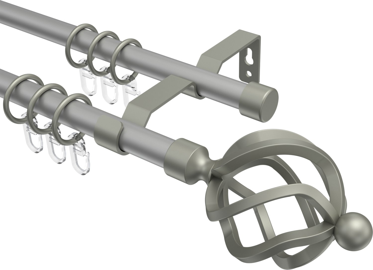 Gardinenstangen aus Metall in 16 mm Ø, 2-läufig, Modell OLYMP - Paolo Silbergrau / Chrom matt