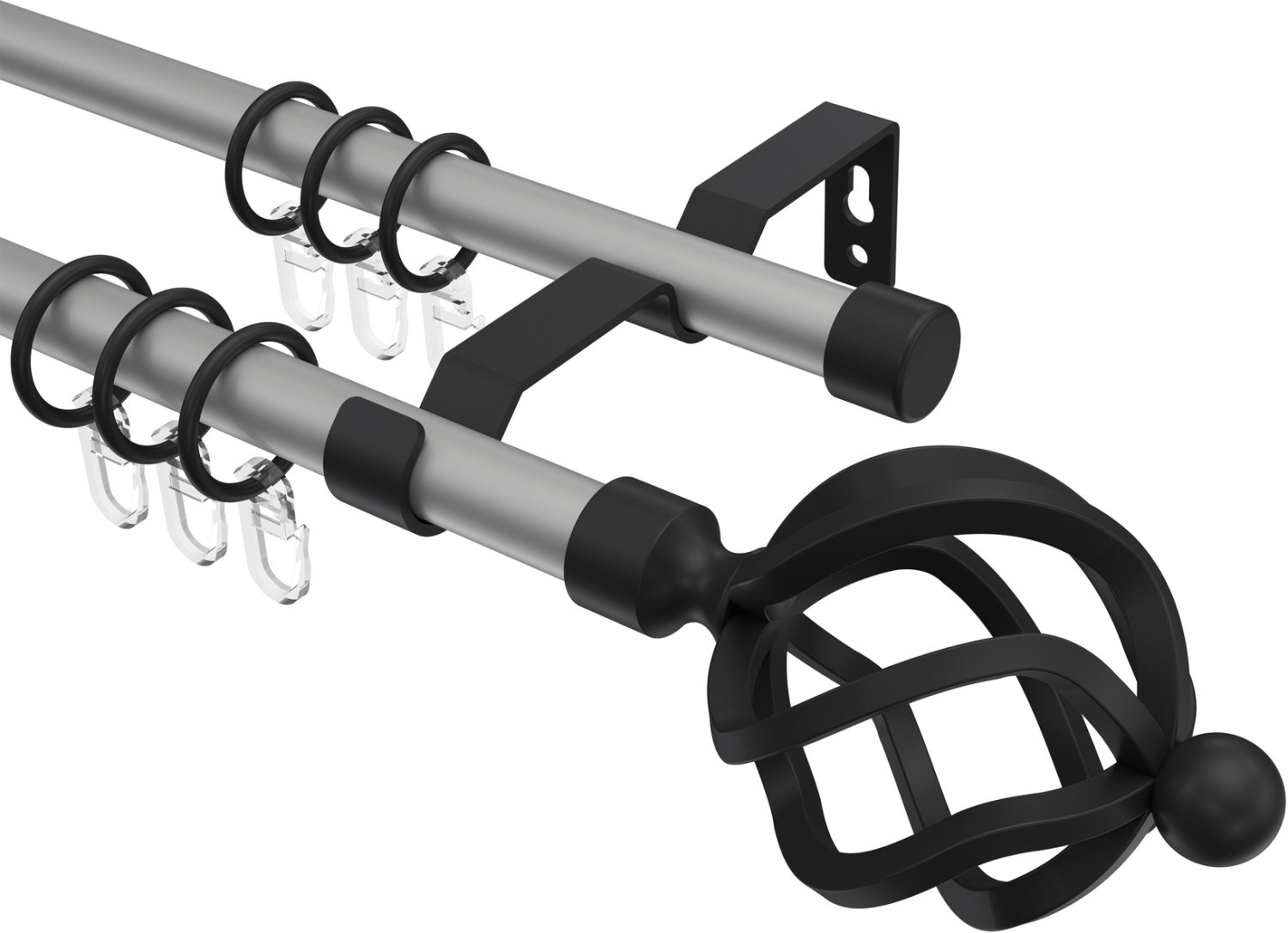 Gardinenstangen aus Metall in 16 mm Ø, 2-läufig, Modell OLYMP - Paolo Silbergrau / Schwarz