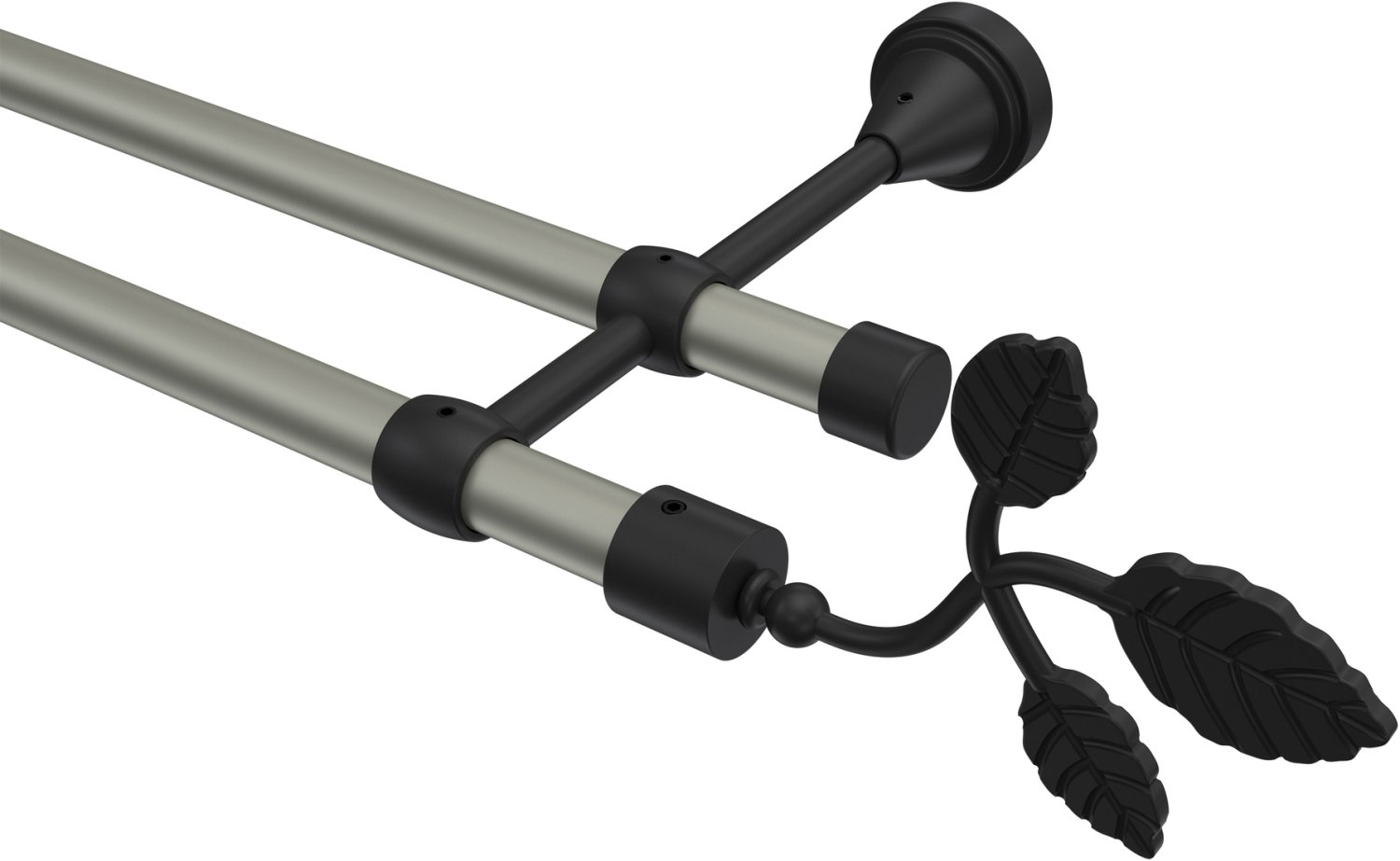 Gardinenstangen aus Metall in 16 mm Ø, 2-läufig, Modell PRIMUS - Alessia Chrom matt / Schwarz (ohne Ringe)