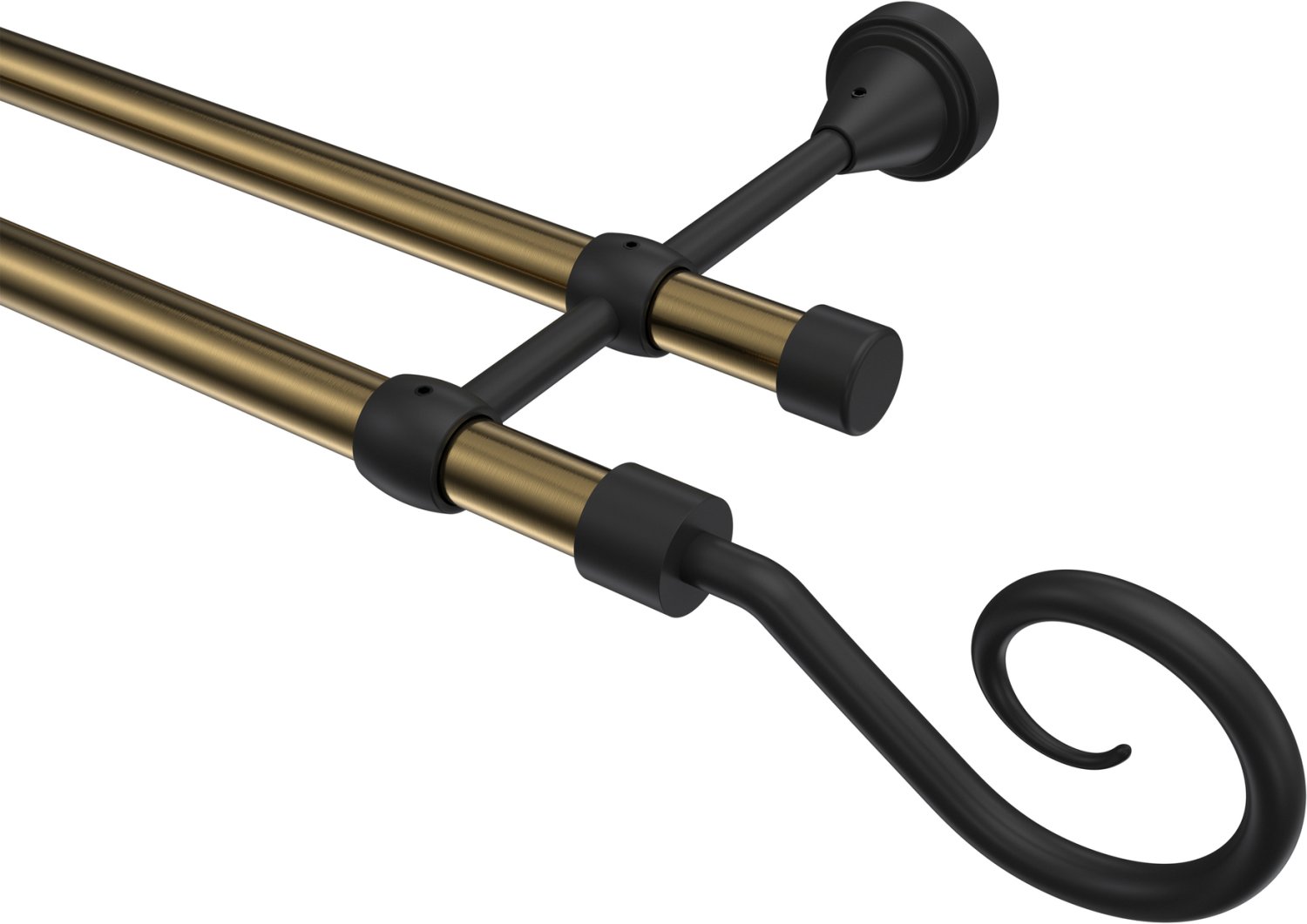 Informationen zu Gardinenstange Metall 16 mm Ø 2-läufig PRIMUS - Allegra Messing Antik / Schwarz (ohne Ringe):