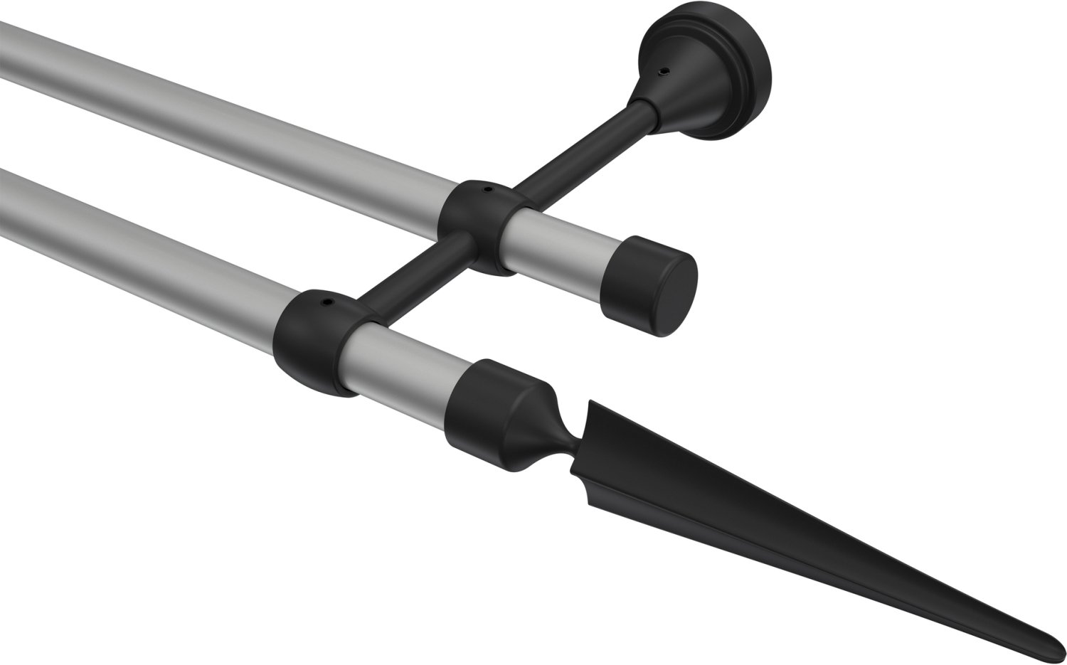 Informationen zu Gardinenstange Metall 16 mm Ø 2-läufig PRIMUS - Lorenzo Silbergrau / Schwarz (ohne Ringe):