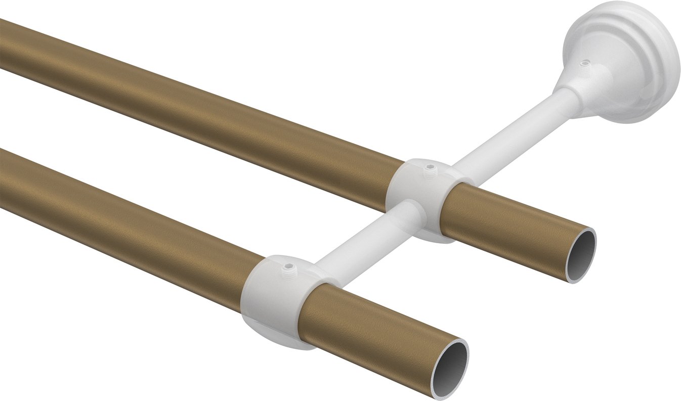 Gardinenstangen aus Metall in 16 mm Ø, 2-läufig, Modell PRIMUS - Lucan Gold matt / Chrom matt (ohne Ringe)