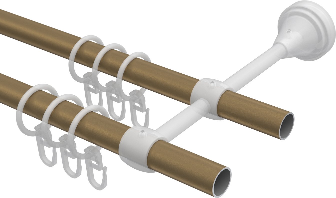 Gardinenstangen aus Metall in 16 mm Ø, 2-läufig, Modell PRIMUS - Lucan Gold matt / Messing Antik