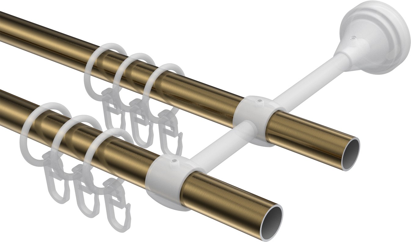 Gardinenstangen aus Metall in 16 mm Ø, 2-läufig, Modell PRIMUS - Lucan Messing Antik