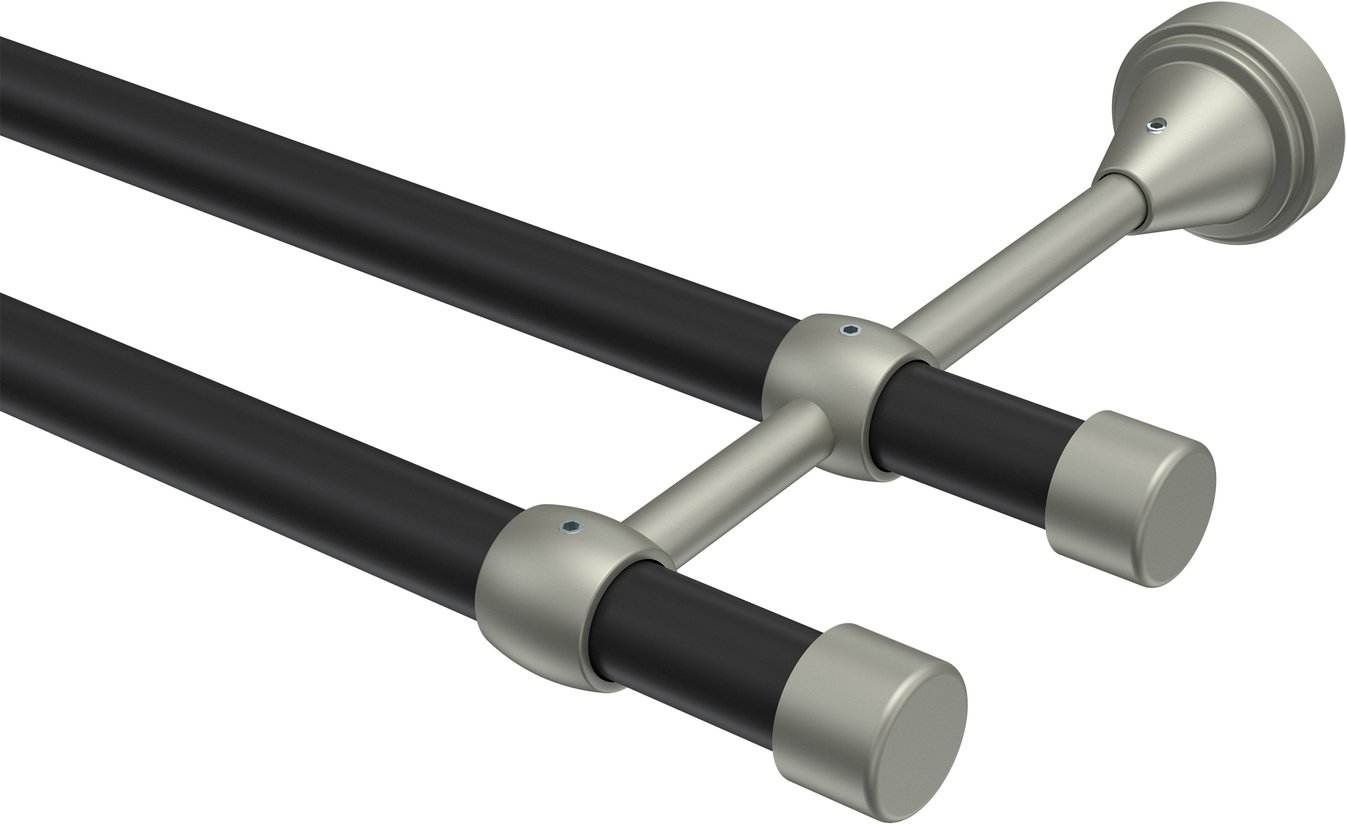 Gardinenstangen aus Metall in 16 mm Ø, 2-läufig, Modell PRIMUS - Lucan Schwarz / Chrom matt (ohne Ringe)