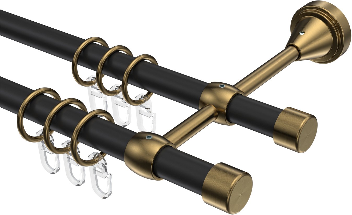 Gardinenstangen aus Metall in 16 mm Ø, 2-läufig, Modell PRIMUS - Lucan Schwarz / Messing Antik
