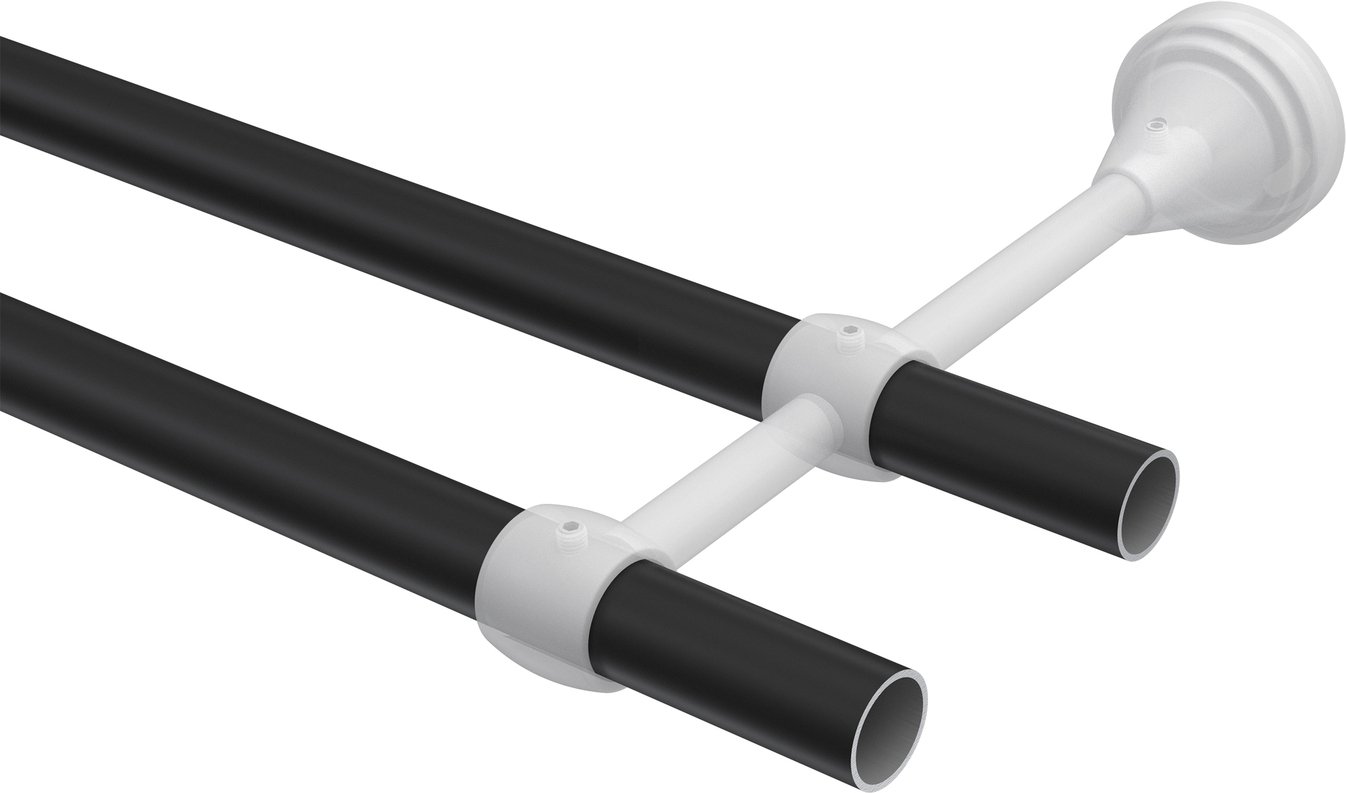 Gardinenstangen aus Metall in 16 mm Ø, 2-läufig, Modell PRIMUS - Lucan Schwarz (ohne Ringe)