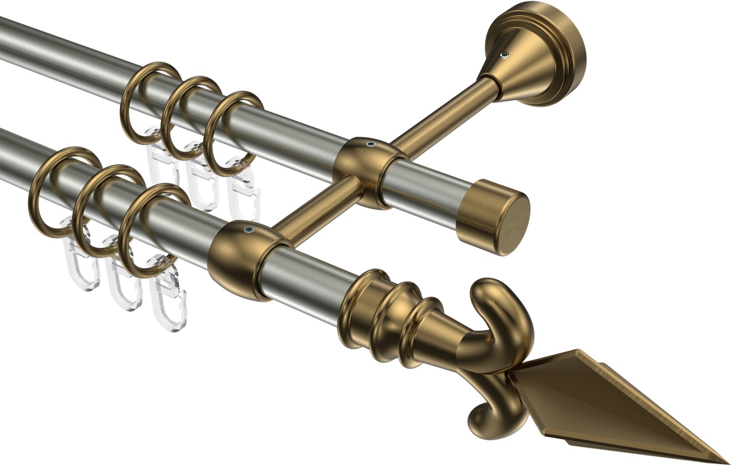 Informationen zu Gardinenstange Metall 16 mm Ø 2-läufig PRIMUS - Matteo Edelstahl-Optik / Messing Antik: