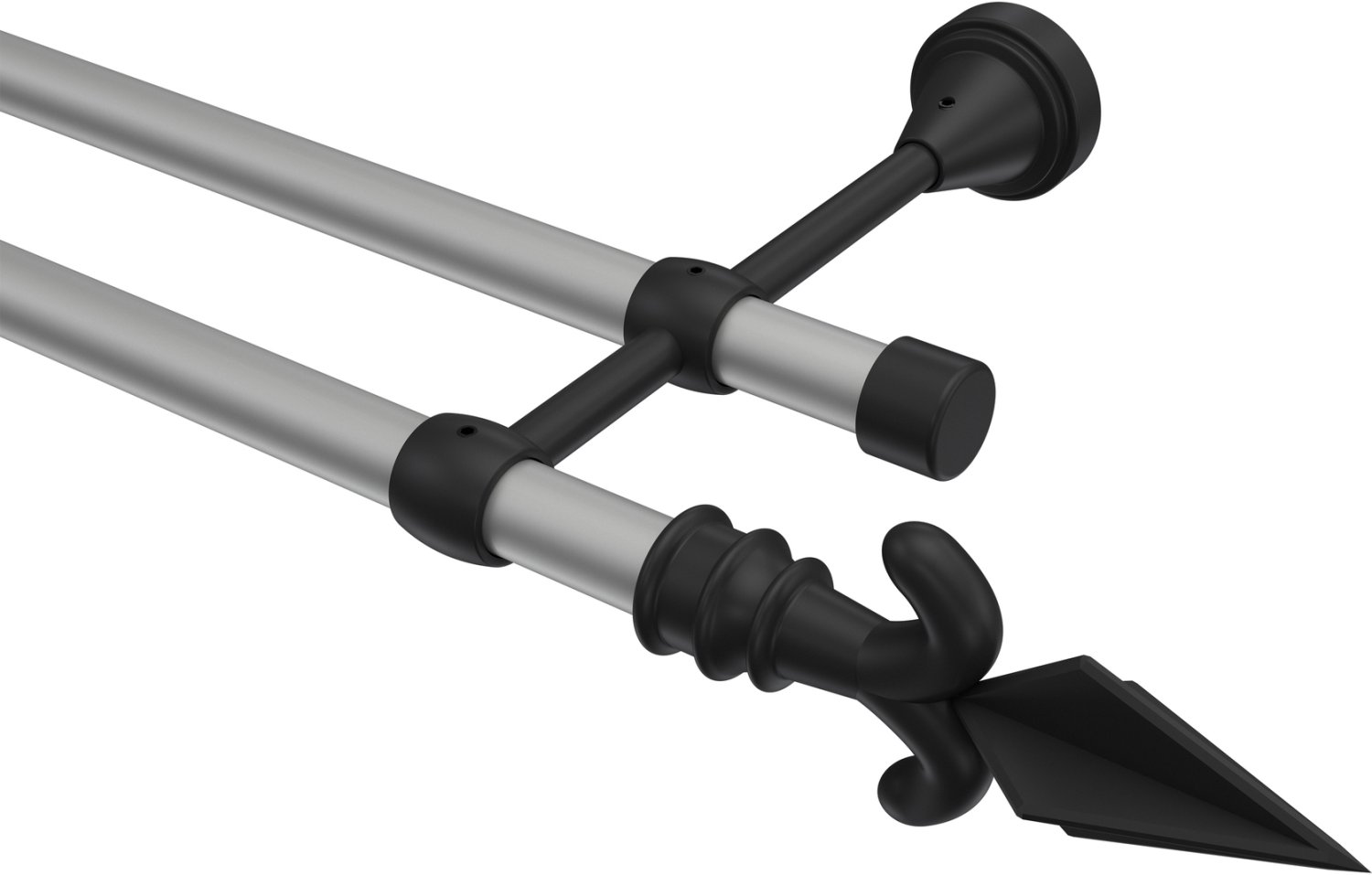 Informationen zu Gardinenstange Metall 16 mm Ø 2-läufig PRIMUS - Matteo Silbergrau / Schwarz (ohne Ringe):