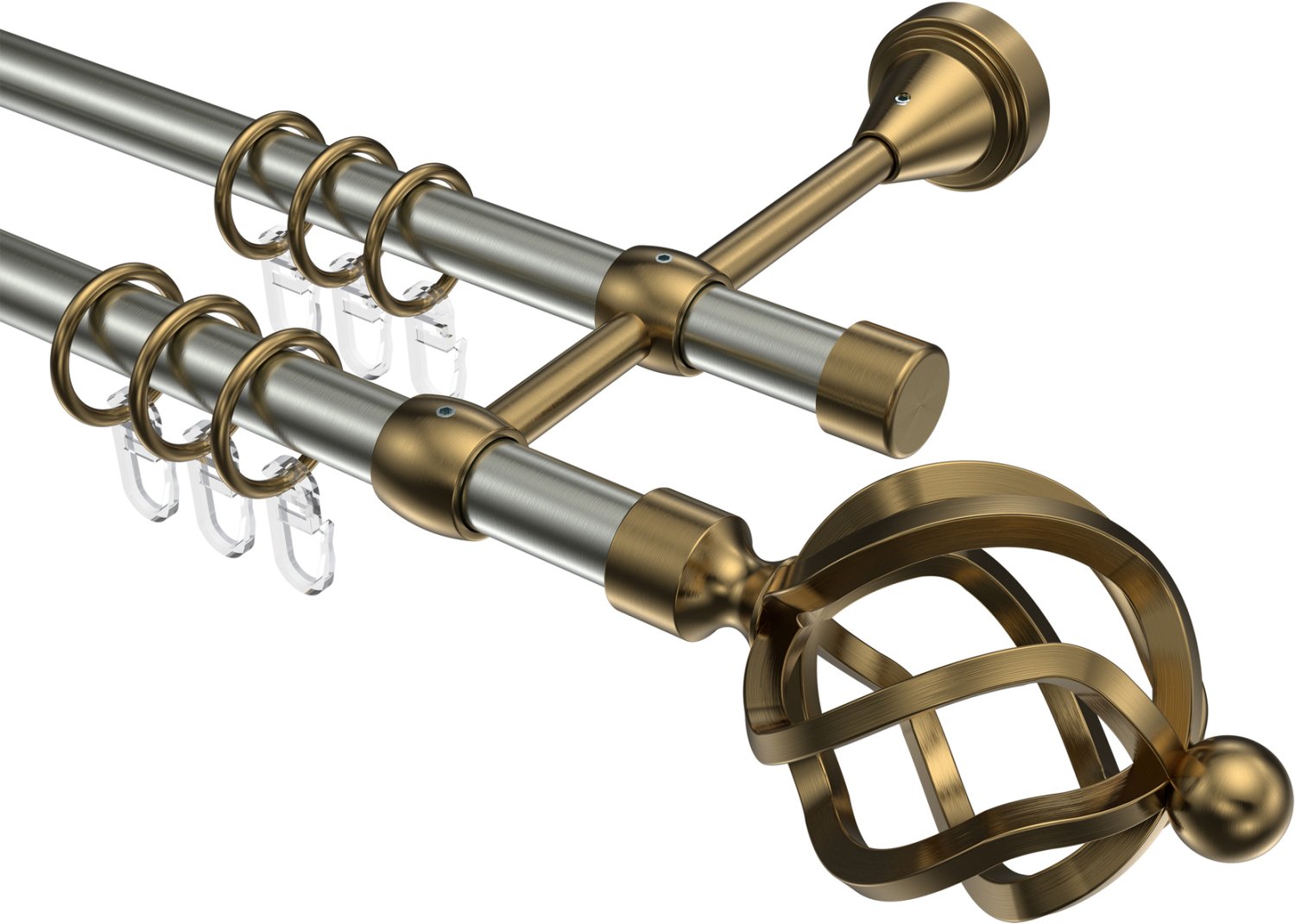 Gardinenstangen aus Metall in 16 mm Ø, 2-läufig, Modell PRIMUS - Paolo Edelstahl-Optik / Messing Antik