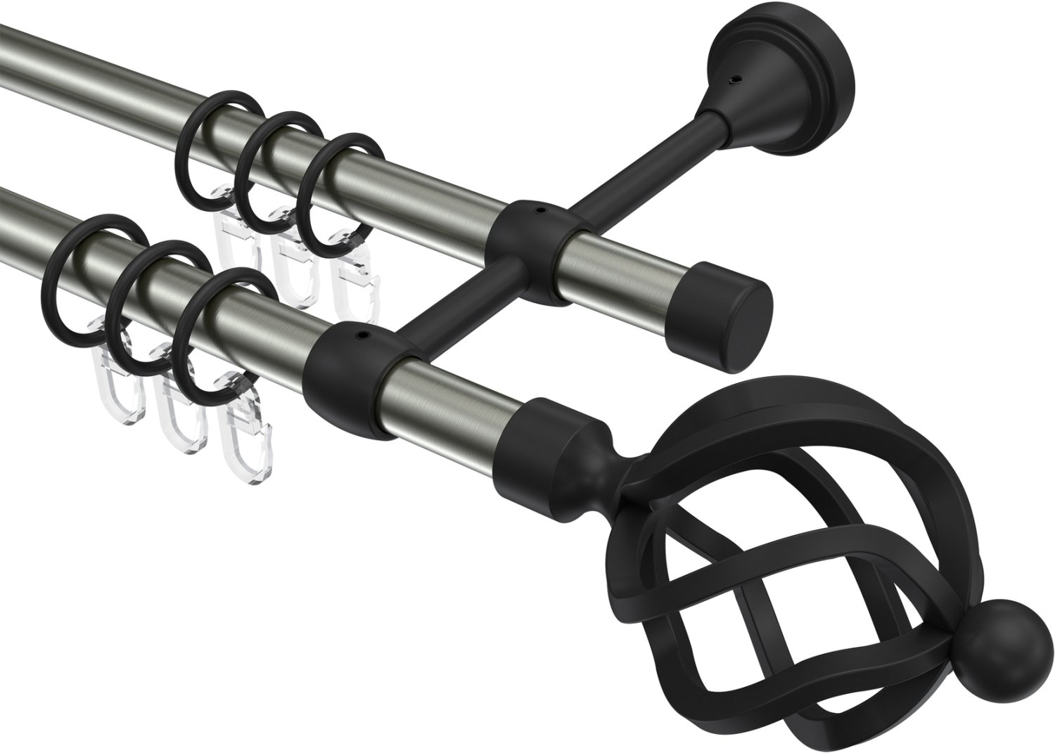 Informationen zu Gardinenstange Metall 16 mm Ø 2-läufig PRIMUS - Paolo Edelstahl-Optik / Schwarz: