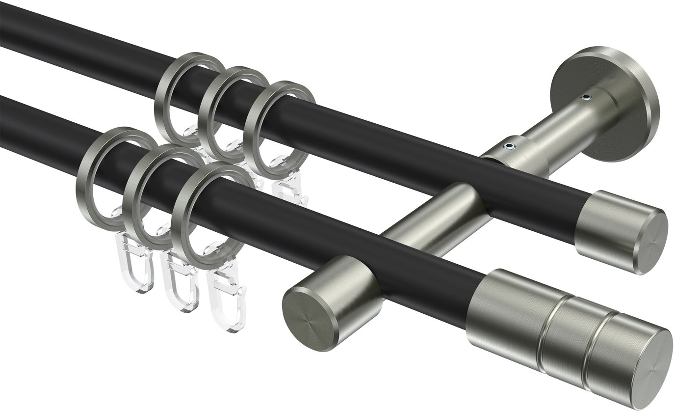Informationen zu Gardinenstange Metall 16 mm Ø 2-läufig SINUX - Caras Schwarz / Edelstahl-Optik: