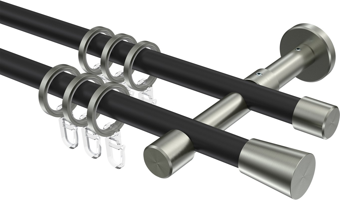 Informationen zu Gardinenstange Metall 16 mm Ø 2-läufig SINUX - Carelli Schwarz / Edelstahl-Optik: