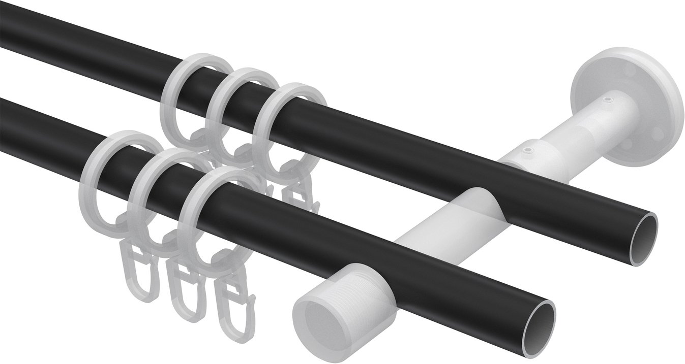Gardinenstangen aus Metall in 16 mm Ø, 2-läufig, Modell SINUX - Carelli Schwarz / Edelstahl-Optik