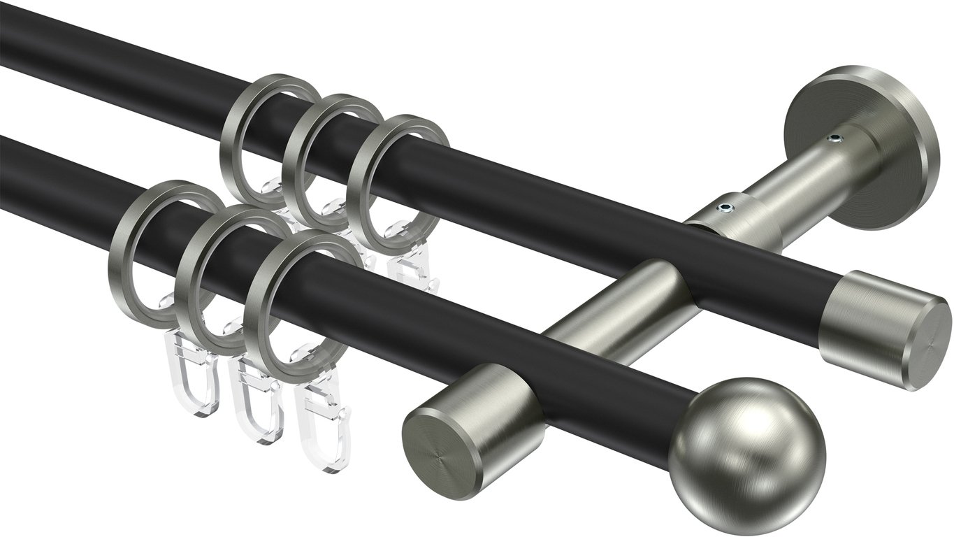 Informationen zu Gardinenstange Metall 16 mm Ø 2-läufig SINUX - Puros Schwarz / Edelstahl-Optik:
