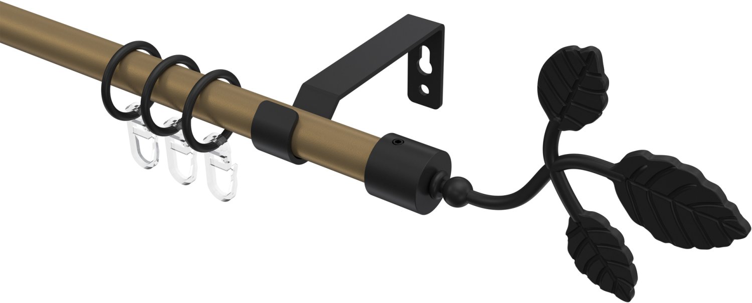 Die hochwertige Gardinenstange Modell OLYMP - Alessia 16 mm Ø hebt Ihre Vorhänge und Gardinen wirkungsvoll hervor. Diese Gardinenstangen aus Metall zeichnen sich durch erstklassige Materialien und präzise Verarbeitung aus. Mit ihrem klassischen Landhaus-Stil bringen unsere Rundrohr-Vorhangstangen frischen Schwung in Ihre Fensterdekoration. Mit geschmackvollen Vorhängen und unserer einläufigen Vorhangstange verleihen Sie Ihren Fenstern einen persönlichen Touch. Dieses Modell OLYMP - Alessia in der Farbe Gold matt / Schwarz eignet sich hervorragend zur Befestigung klassischer Dekore. Unsere Vorhangstangen sind in zahlreichen Größen und Farben hier in Gold matt / Schwarz erhältlich und eignen sich daher ideal für unterschiedlich große Fenster. Die clevere Bauweise der Stilgarnitur des Modells OLYMP - Alessia sorgt für eine unkomplizierte Montage und ein schnelles Anbringen der Fensterdekoration. Diese Stilgarnituren werden als komplettes Set inklusive Befestigungsmaterial und passendem Zubehör zur Gardinenanbringung geliefert. Unter dem Abschnitt "Lieferumfang" finden Sie eine detaillierte Auflistung aller enthaltenen Komponenten und Teile.