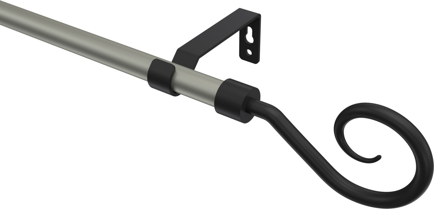 Gardinenstangen aus Metall in 16 mm Ø, 1-läufig, Modell OLYMP - Allegra Chrom matt / Schwarz (ohne Ringe)