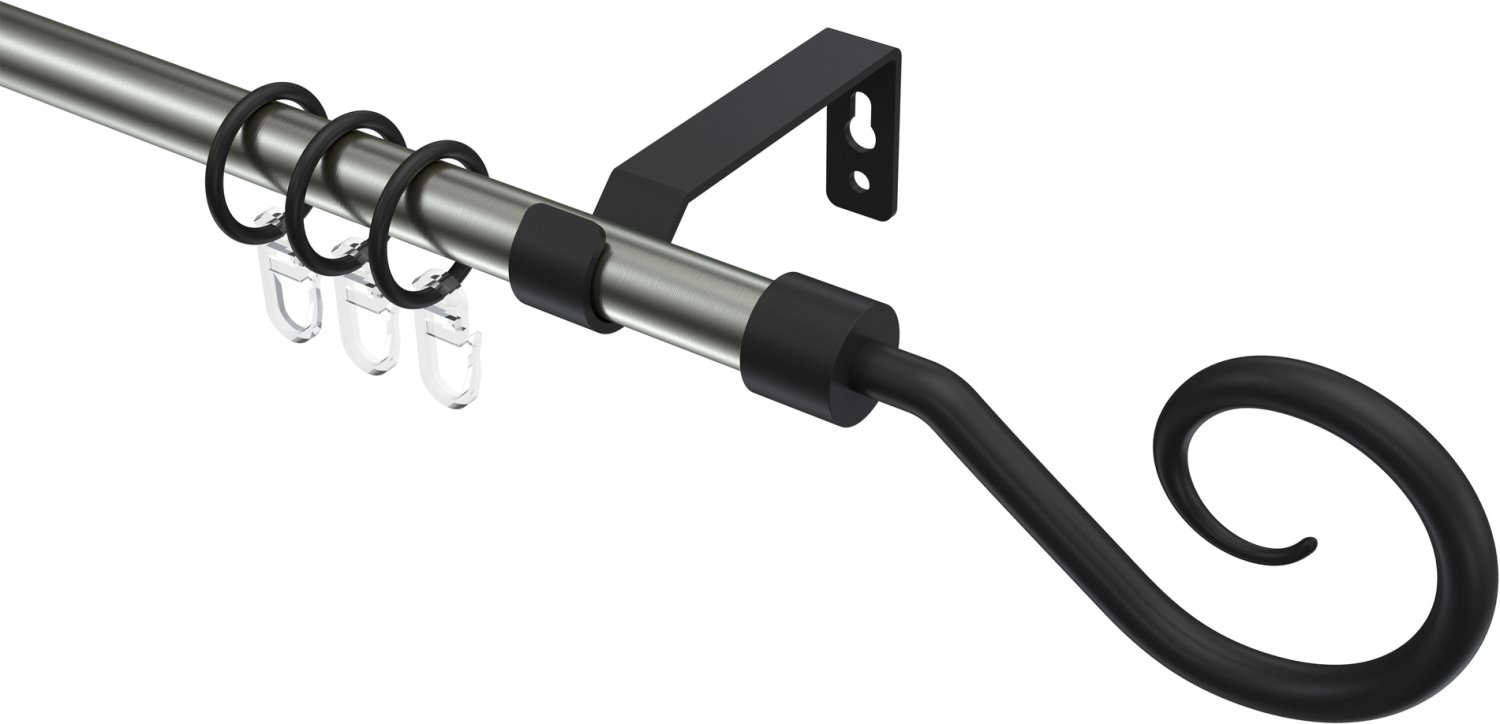 Gardinenstangen aus Metall in 16 mm Ø, 1-läufig, Modell OLYMP - Allegra Edelstahl-Optik / Schwarz