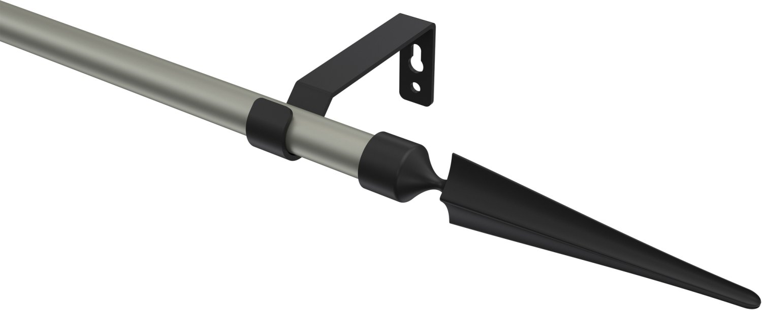 Gardinenstangen aus Metall in 16 mm Ø, 1-läufig, Modell OLYMP - Lorenzo Chrom matt / Schwarz (ohne Ringe)