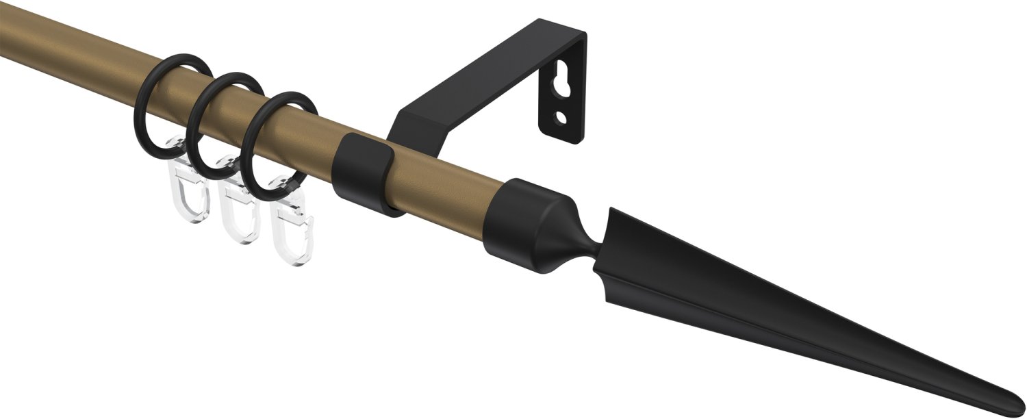 Gardinenstangen aus Metall in 16 mm Ø, 1-läufig, Modell OLYMP - Lorenzo Gold matt / Schwarz