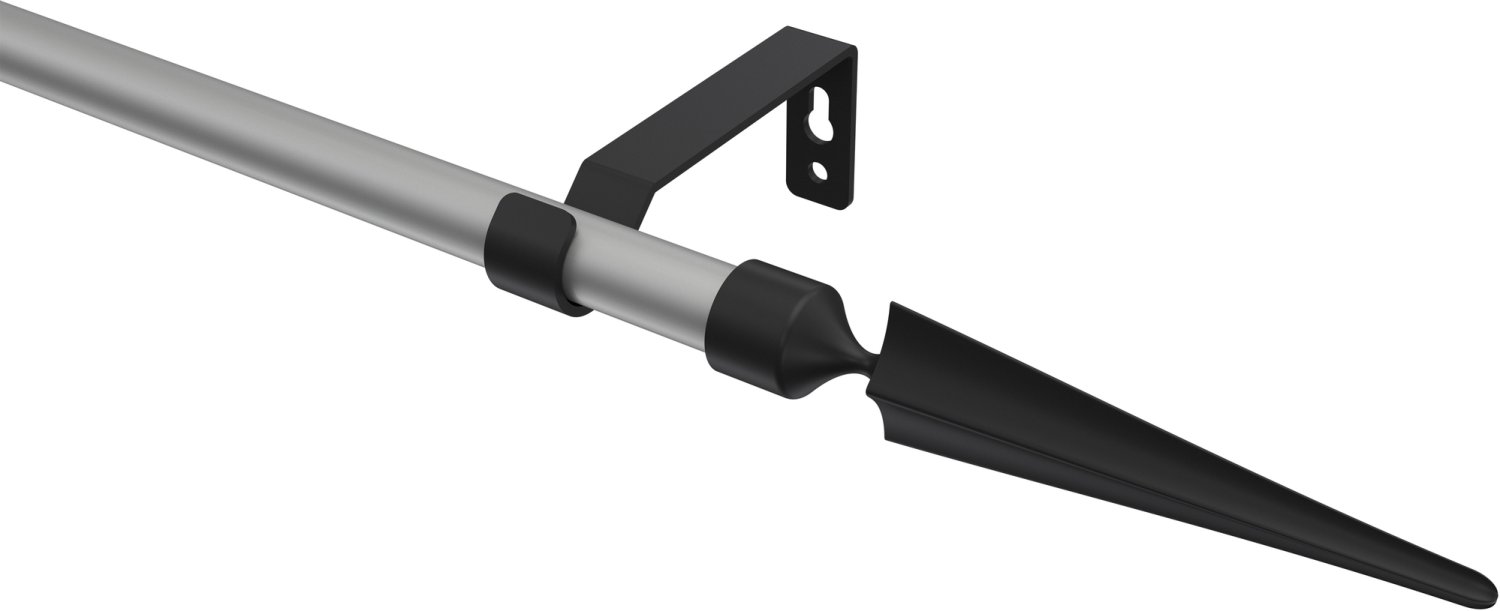 Gardinenstangen aus Metall in 16 mm Ø, 1-läufig, Modell OLYMP - Lorenzo Silbergrau / Schwarz (ohne Ringe)