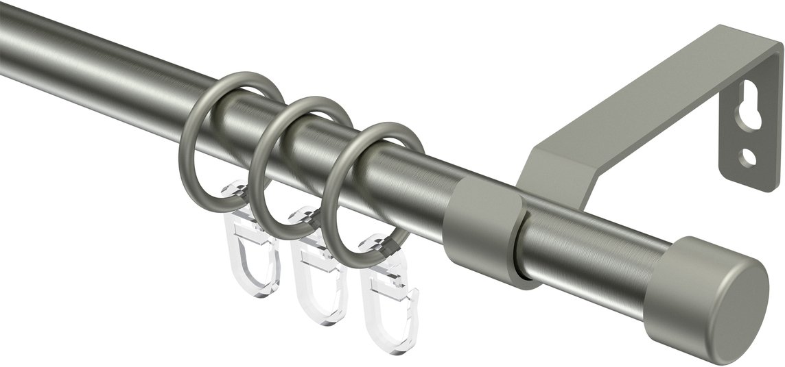 Gardinenstangen aus Metall in 16 mm Ø, 1-läufig, Modell OLYMP - Lucan Edelstahl-Optik / Chrom matt