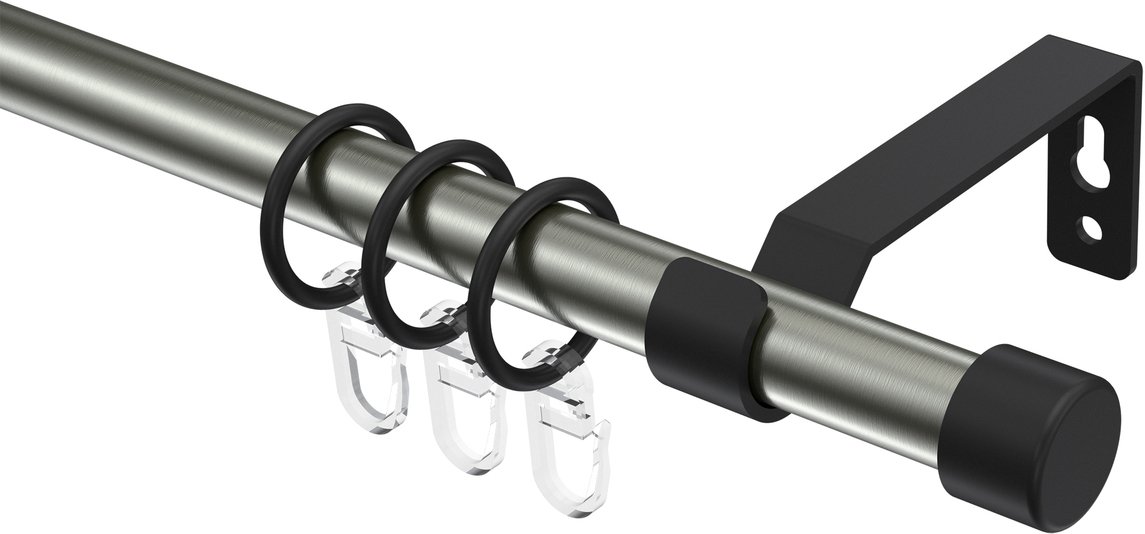 Gardinenstangen aus Metall in 16 mm Ø, 1-läufig, Modell OLYMP - Lucan Edelstahl-Optik / Schwarz