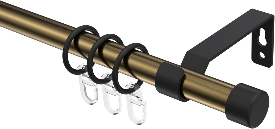 Gardinenstangen aus Metall in 16 mm Ø, 1-läufig, Modell OLYMP - Lucan Messing Antik / Schwarz