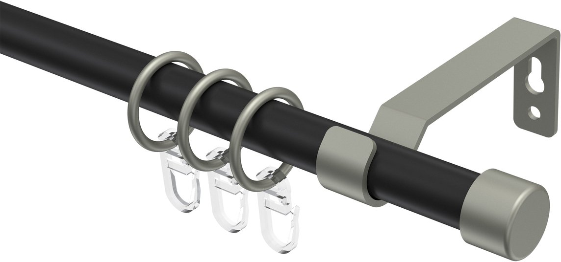 Gardinenstangen aus Metall in 16 mm Ø, 1-läufig, Modell OLYMP - Lucan Schwarz / Chrom matt