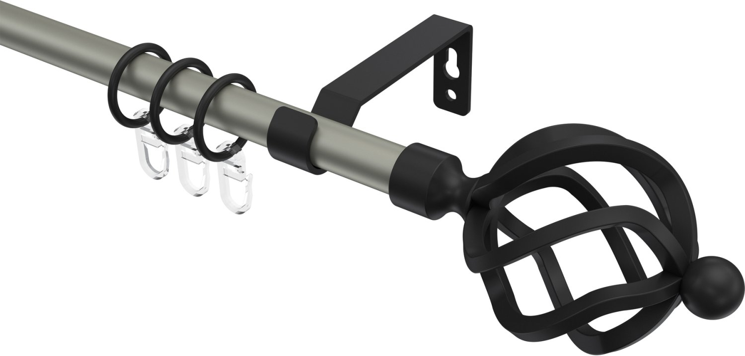 Gardinenstangen aus Metall in 16 mm Ø, 1-läufig, Modell OLYMP - Paolo Chrom matt / Schwarz