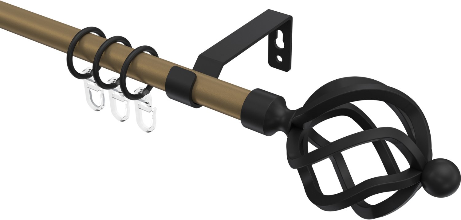 Gardinenstangen aus Metall in 16 mm Ø, 1-läufig, Modell OLYMP - Paolo Gold matt / Schwarz