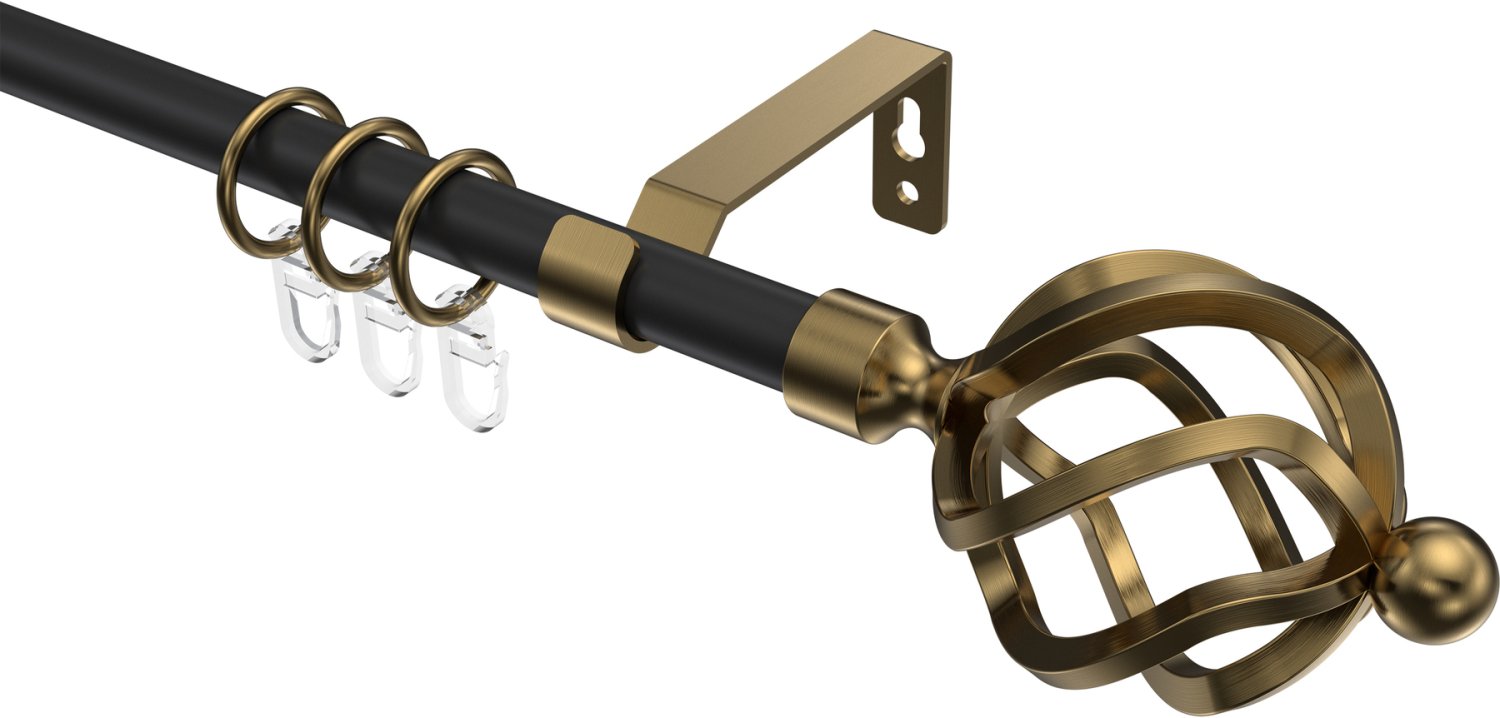 Gardinenstangen aus Metall in 16 mm Ø, 1-läufig, Modell OLYMP - Paolo Schwarz / Messing Antik
