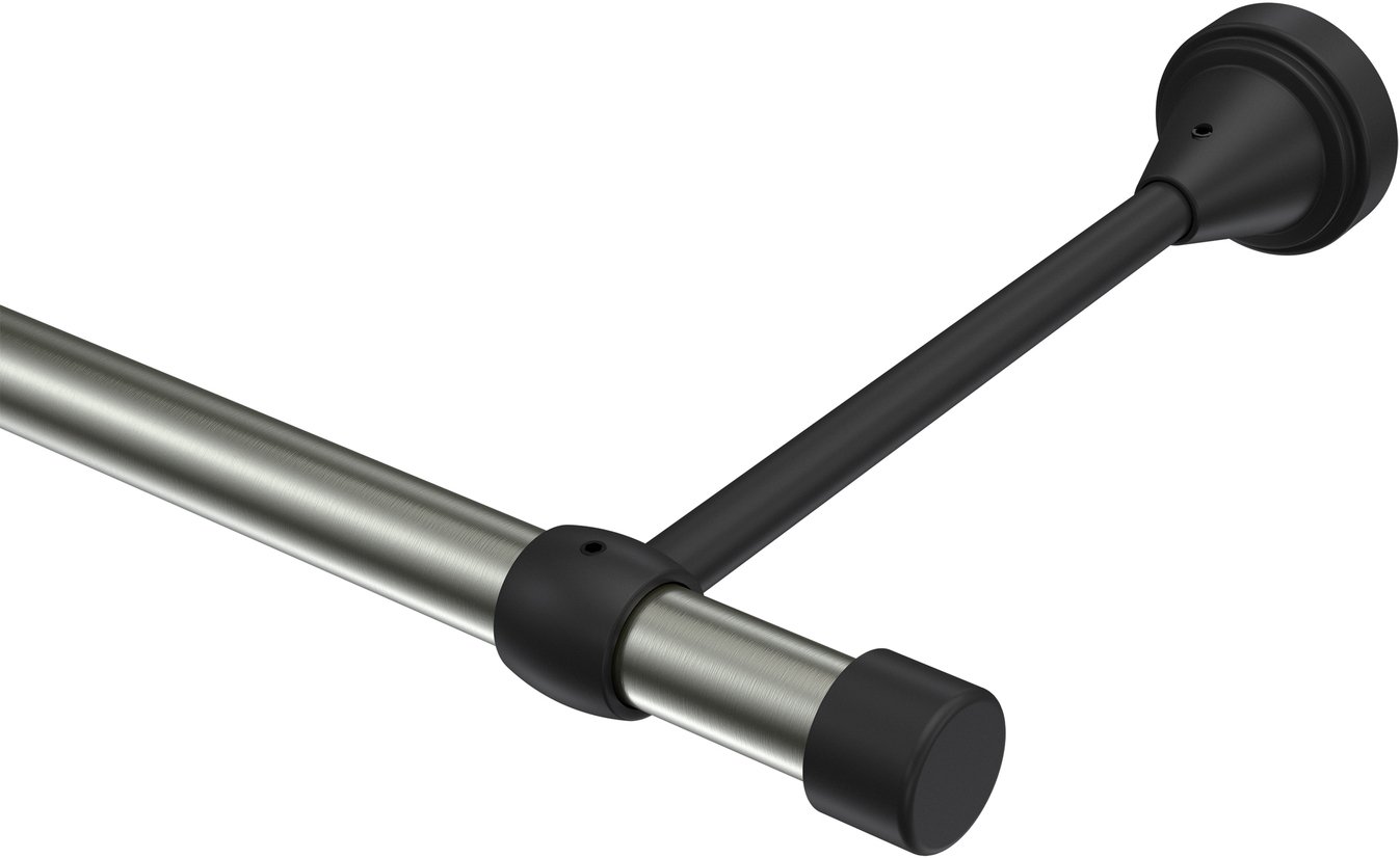 Gardinenstangen aus Metall in 16 mm Ø, 1-läufig, Modell PRIMUS - Lucan Edelstahl-Optik / Schwarz (ohne Ringe)