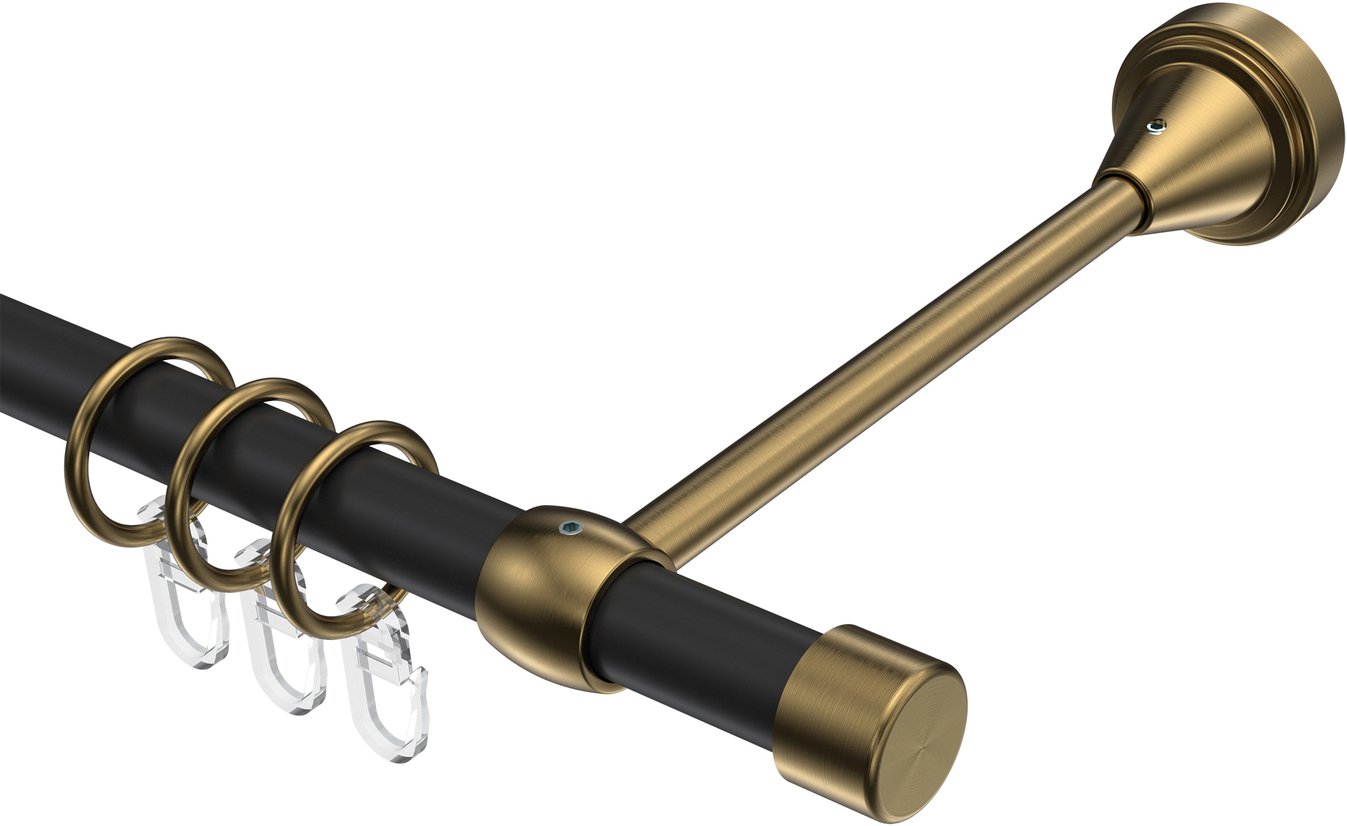 Gardinenstangen aus Metall in 16 mm Ø, 1-läufig, Modell PRIMUS - Lucan Schwarz / Messing Antik