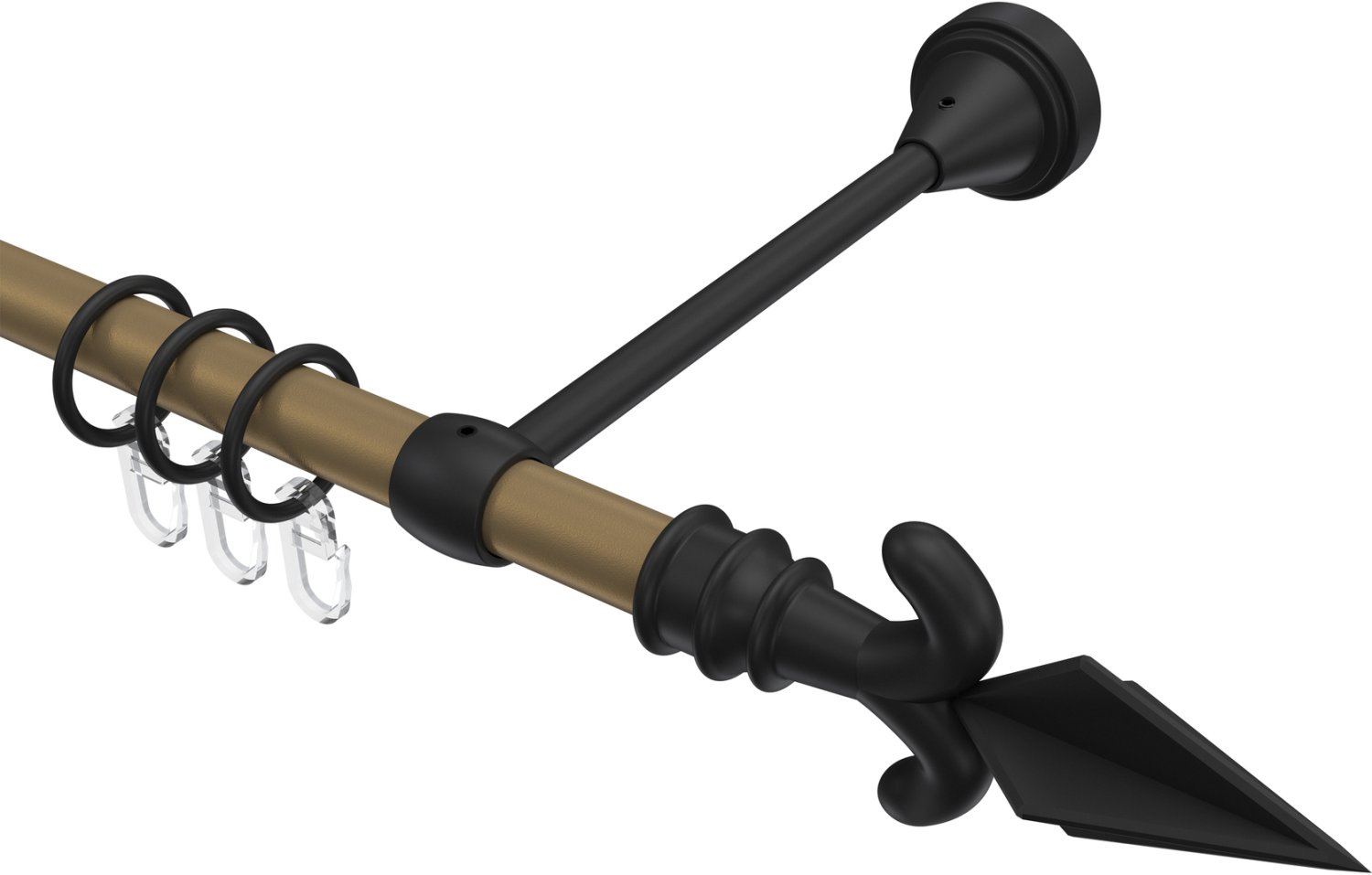 Gardinenstangen aus Metall in 16 mm Ø, 1-läufig, Modell PRIMUS - Matteo Gold matt / Schwarz