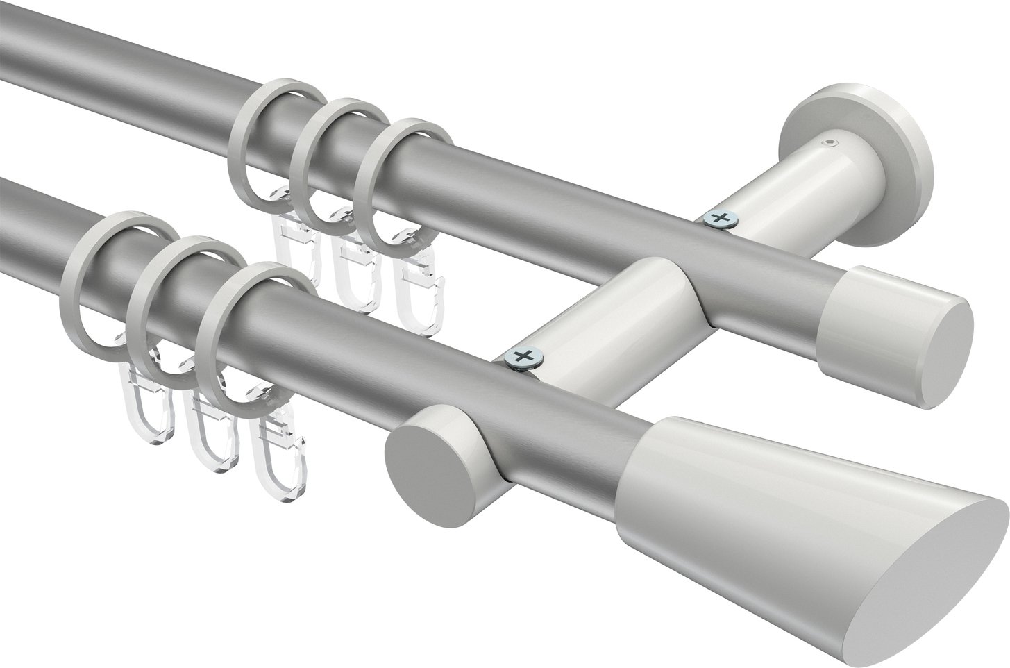 Gardinenstangen aus Metall in 20 mm Ø, 2-läufig, Modell PLATON - Bento Silbergrau / Weiß