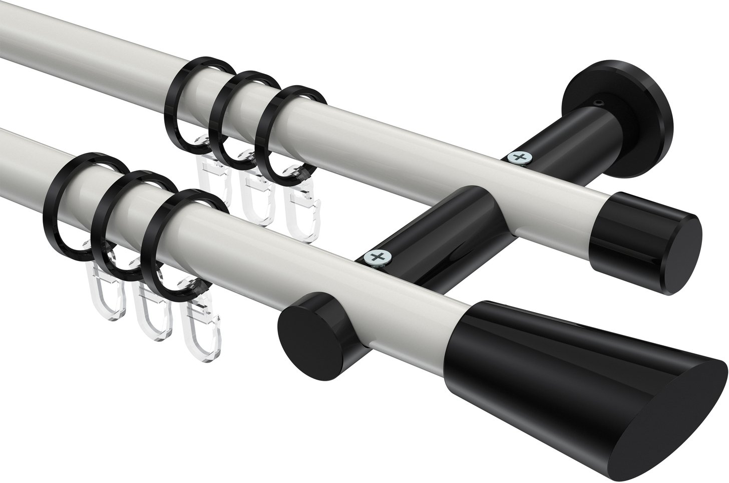 Gardinenstangen aus Metall in 20 mm Ø, 2-läufig, Modell PLATON - Bento Weiß / Schwarz