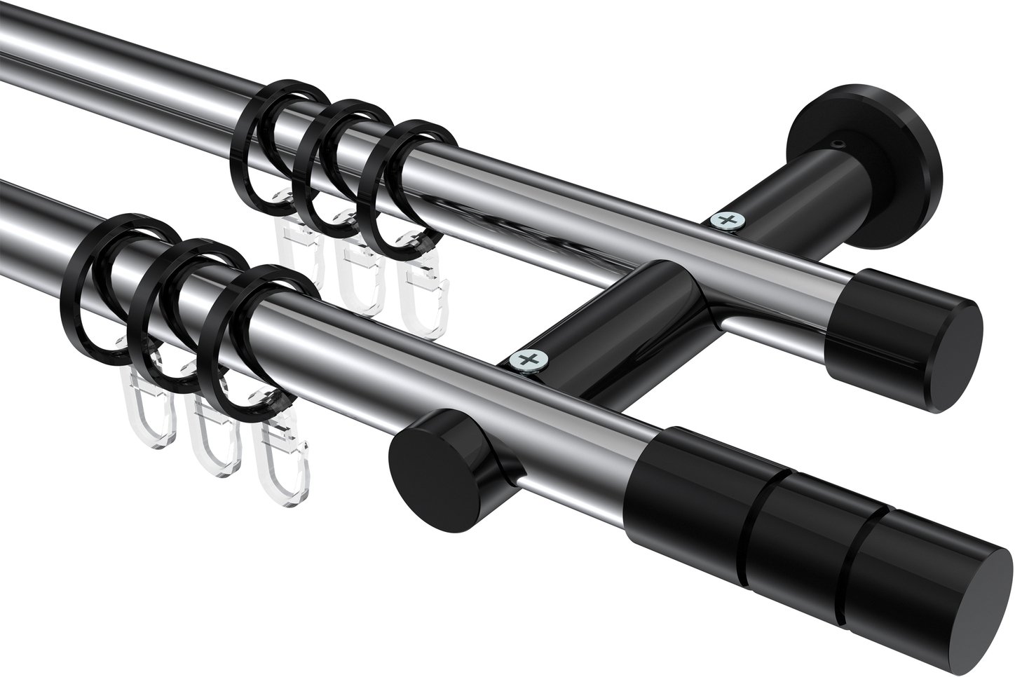 Informationen zu Gardinenstange Metall 20 mm Ø 2-läufig PLATON - Elanto Chrom / Schwarz: