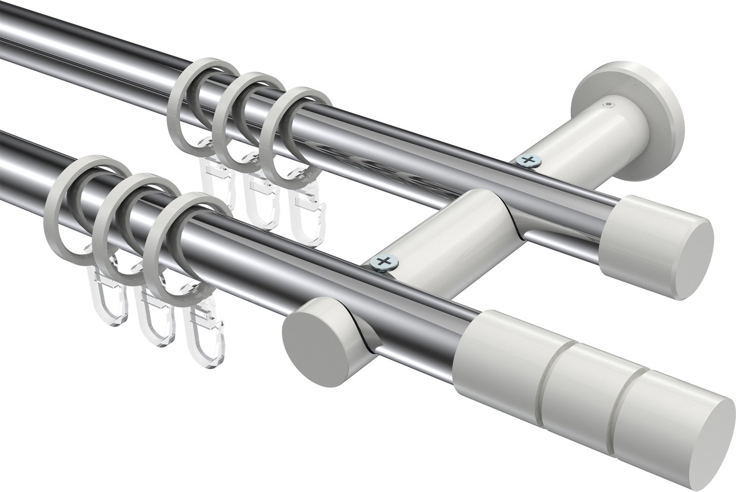 Gardinenstangen aus Metall in 20 mm Ø, 2-läufig, Modell PLATON - Elanto Chrom / Weiß