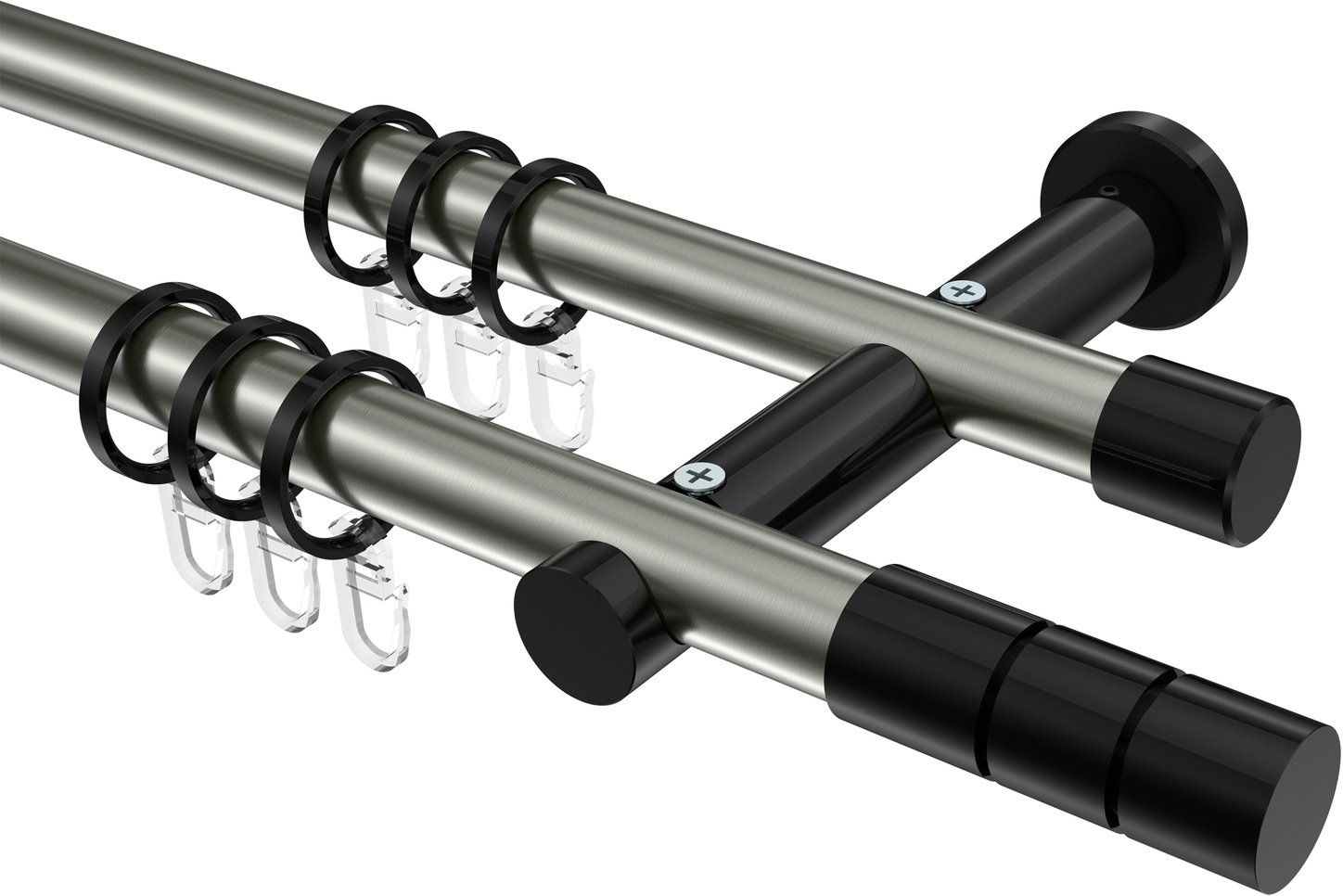 Gardinenstangen aus Metall in 20 mm Ø, 2-läufig, Modell PLATON - Elanto Edelstahl-Optik / Schwarz
