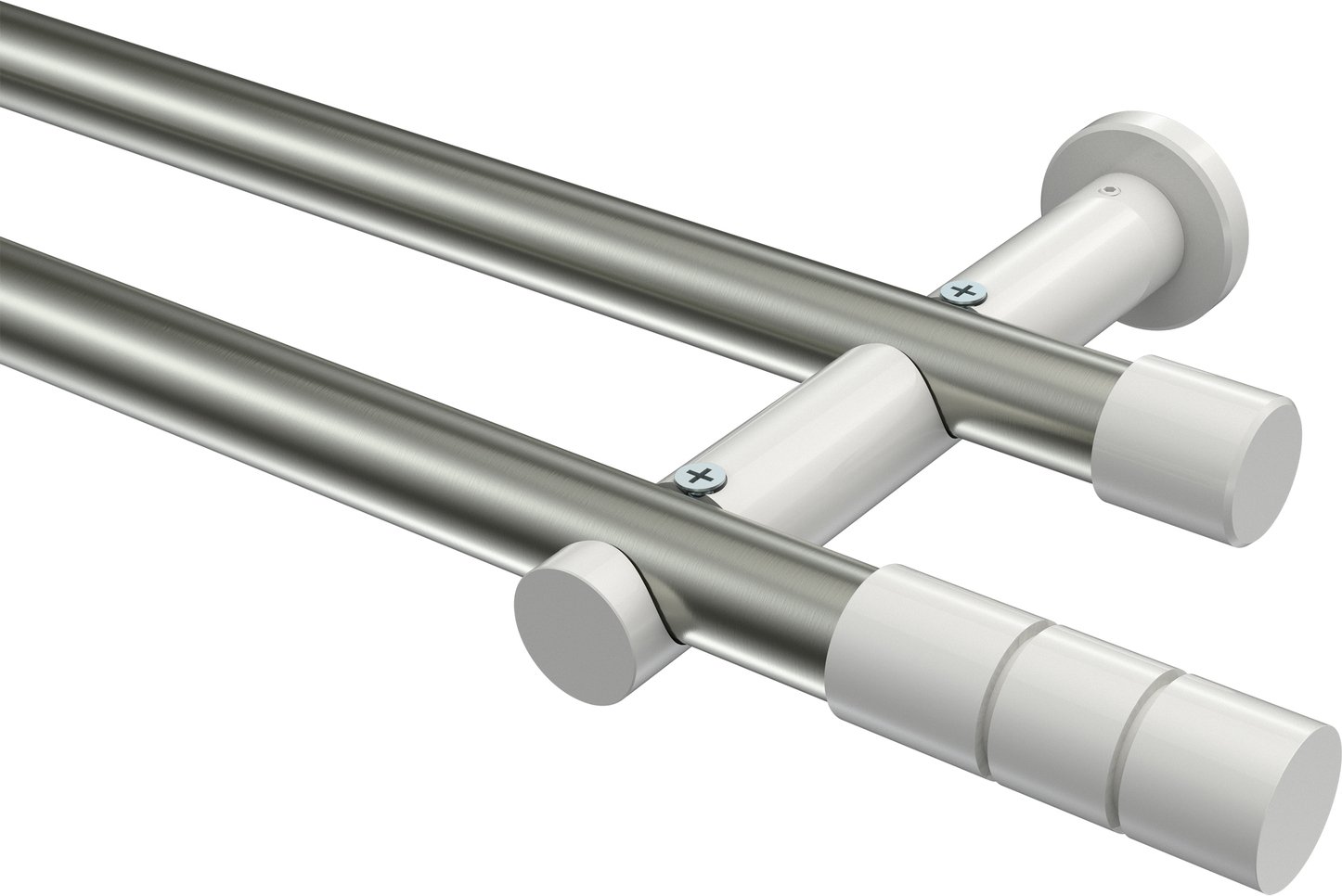 Informationen zu Gardinenstange Metall 20 mm Ø 2-läufig PLATON - Elanto Edelstahl-Optik / Weiß (ohne Ringe):