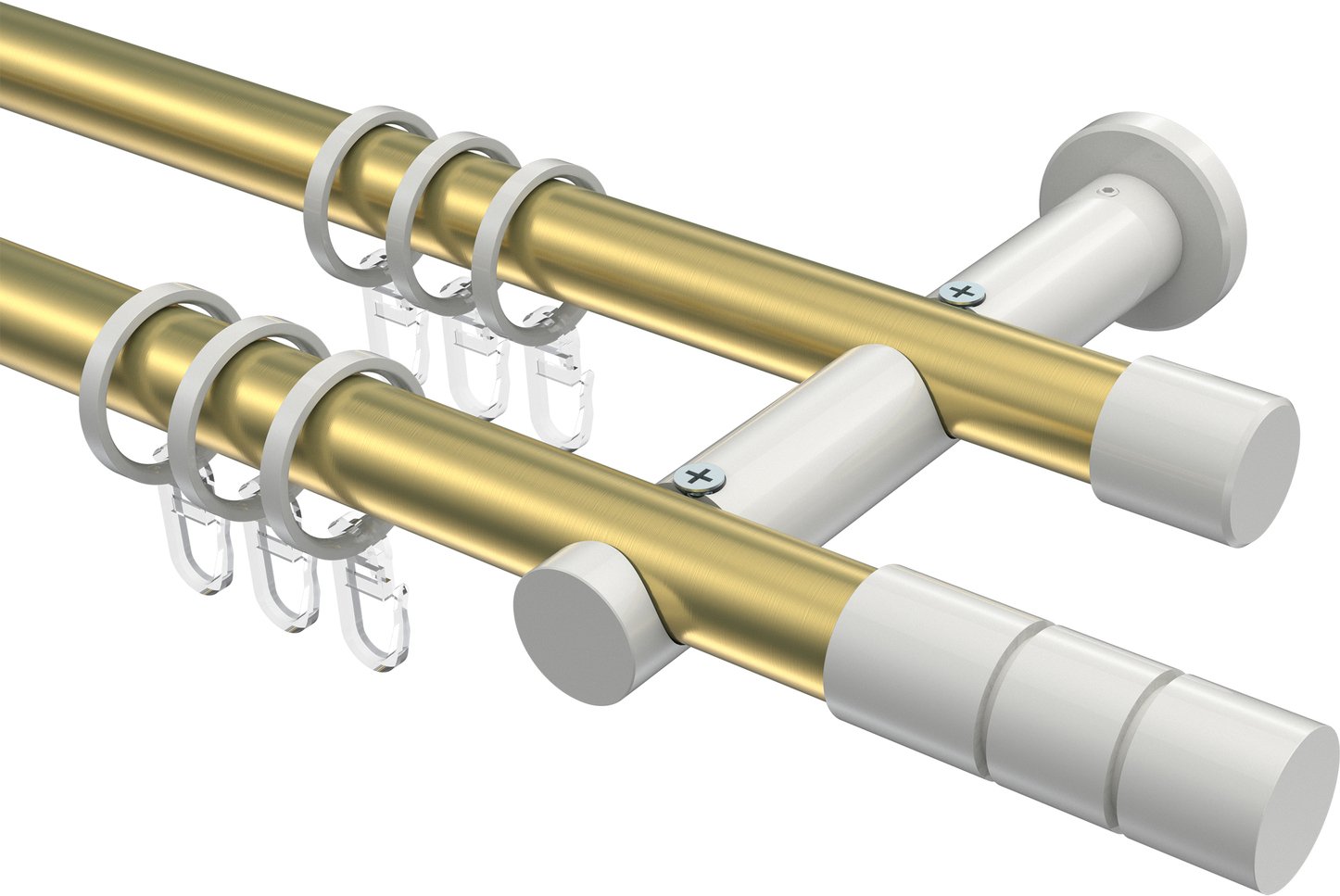 Gardinenstangen aus Metall in 20 mm Ø, 2-läufig, Modell PLATON - Elanto Messing-Optik / Weiß