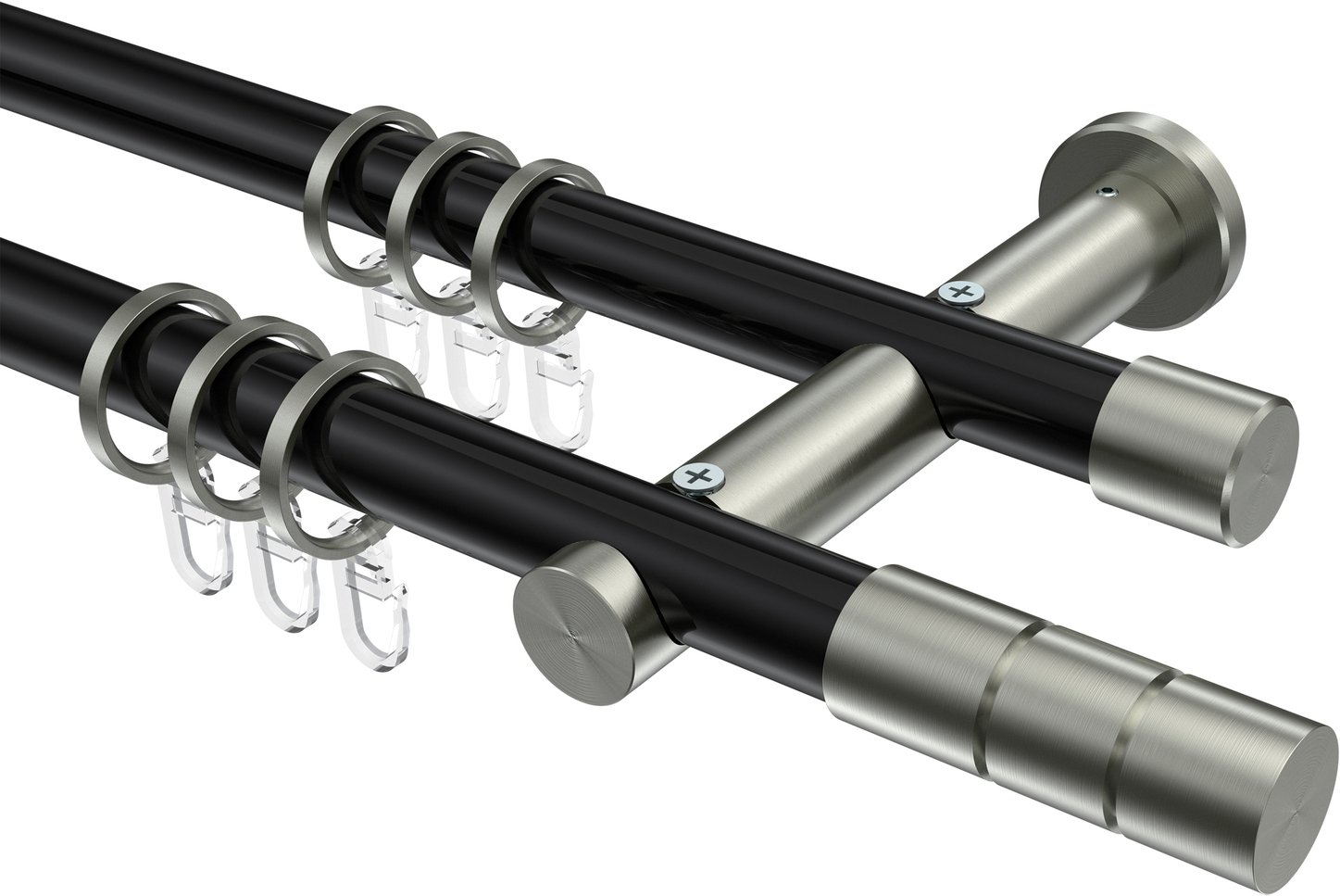 Informationen zu Gardinenstange Metall 20 mm Ø 2-läufig PLATON - Elanto Schwarz / Edelstahl-Optik: