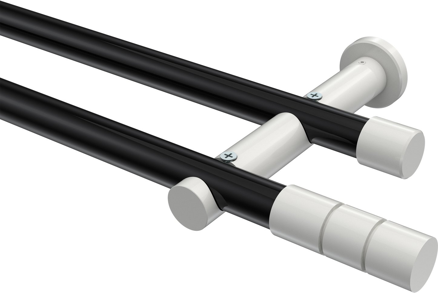 Informationen zu Gardinenstange Metall 20 mm Ø 2-läufig PLATON - Elanto Schwarz / Weiß (ohne Ringe):