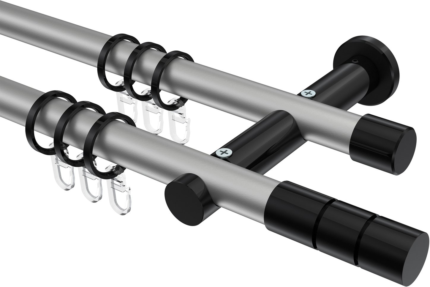 Informationen zu Gardinenstange Metall 20 mm Ø 2-läufig PLATON - Elanto Silbergrau / Schwarz: