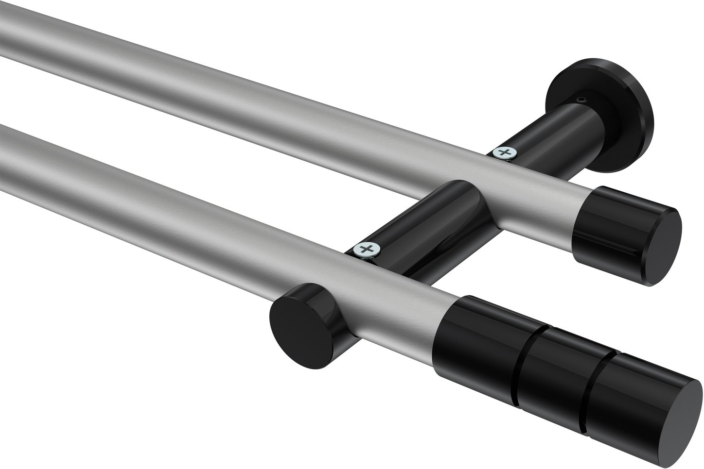 Informationen zu Gardinenstange Metall 20 mm Ø 2-läufig PLATON - Elanto Silbergrau / Schwarz (ohne Ringe):